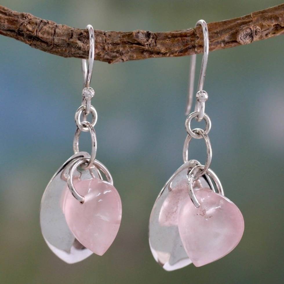 Fair Trade Jewelry Sterling Silver Earrings with Rose Quartz 'Glistening Dew' Item ID: 2671793144