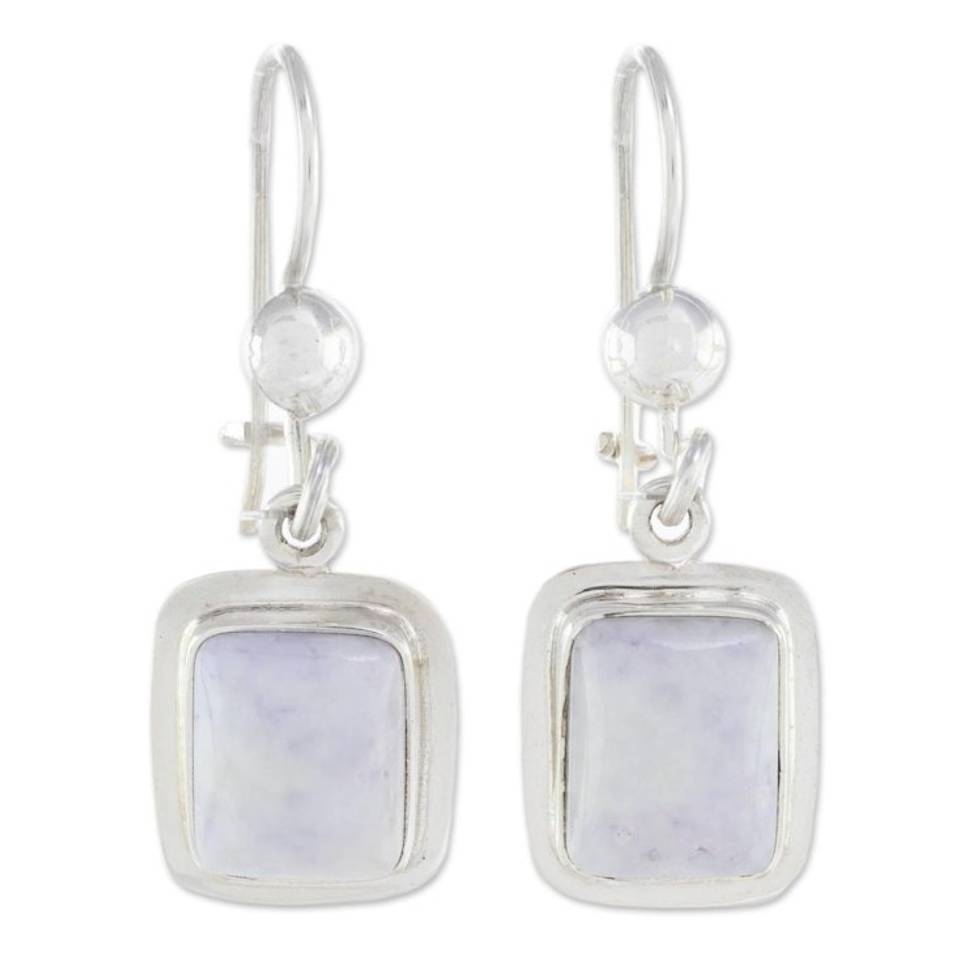 Fair Trade Lilac Jade and Silver Modern Earrings 'Maya Lilac' Item ID: 2671777604