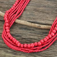 Fair Trade Long Wood Beaded Necklace in Bright Red 'Cabana Dance' Item ID: 2669925956