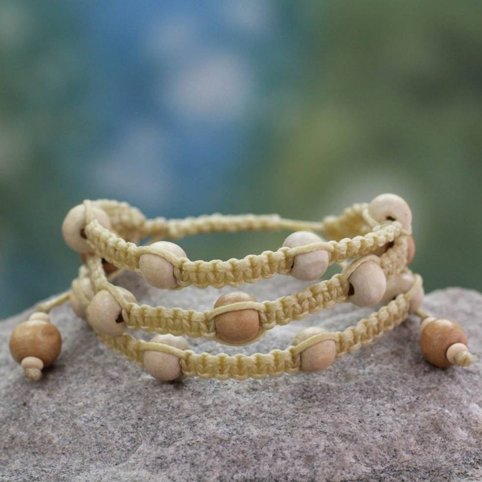 Fair Trade Macrame Wood Bead Shambhala-style Bracelet 'Peaceful Spirit' Item ID: 2671793584