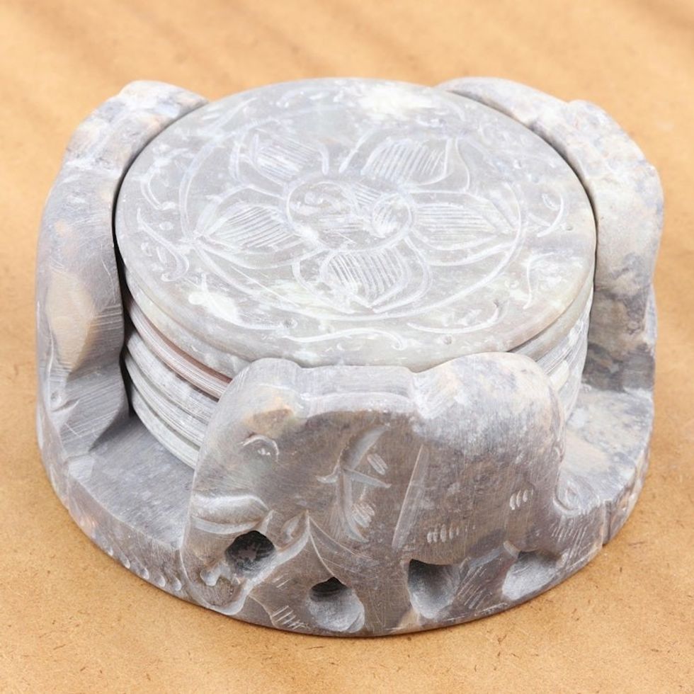 Fair Trade Marble Coaster Elephant Barware Set of 6 'Elephant Rose' Item ID: 2671619721