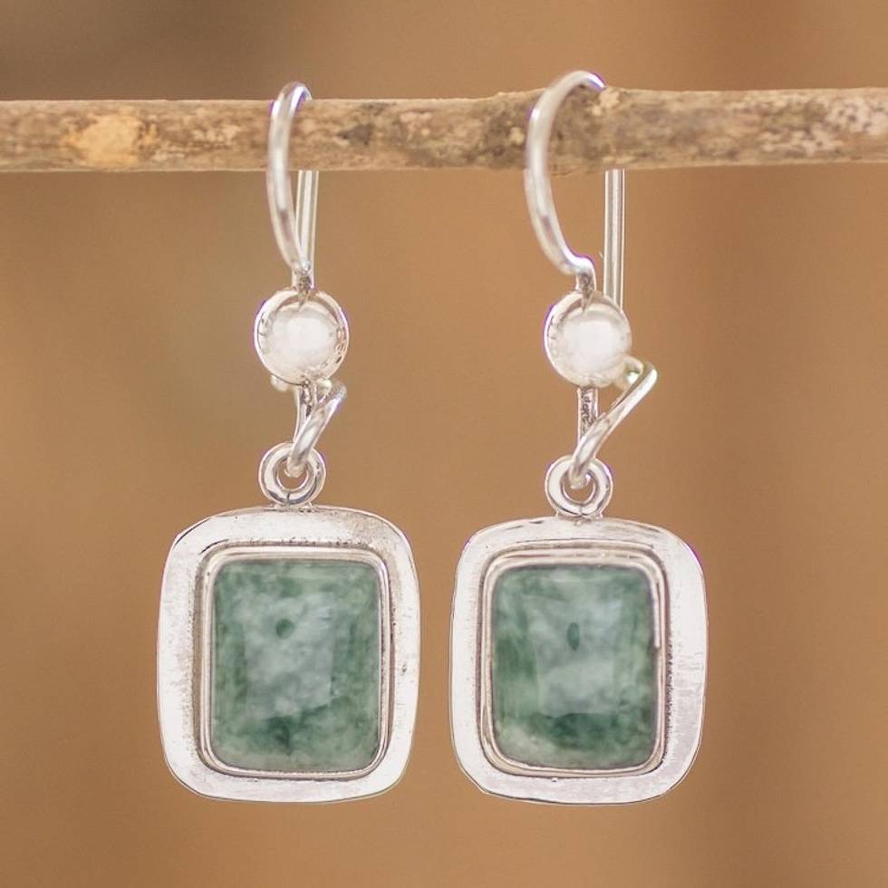 Fair Trade Modern Green Jade and Silver Earrings 'Modern Maya' Item ID: 2671626015