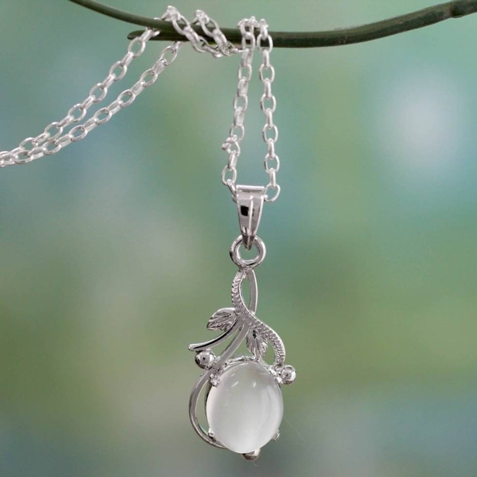 Fair Trade Moonstone and Sterling Silver Necklace 'Surreal Treasure' Item ID: 2671793683