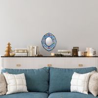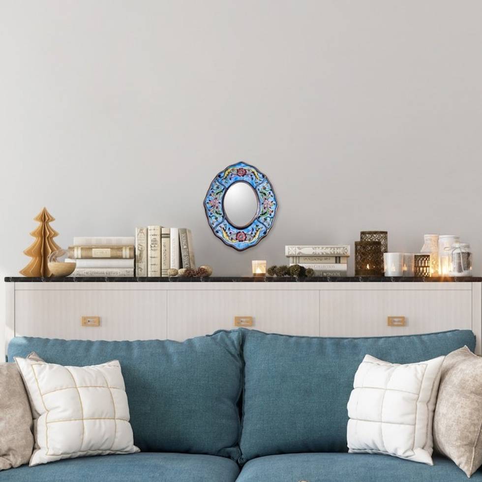Fair Trade Reverse Painted Glass Wall Mirror in Aged Blue 'Blue Colonial Wreath' Item ID: 2671691472