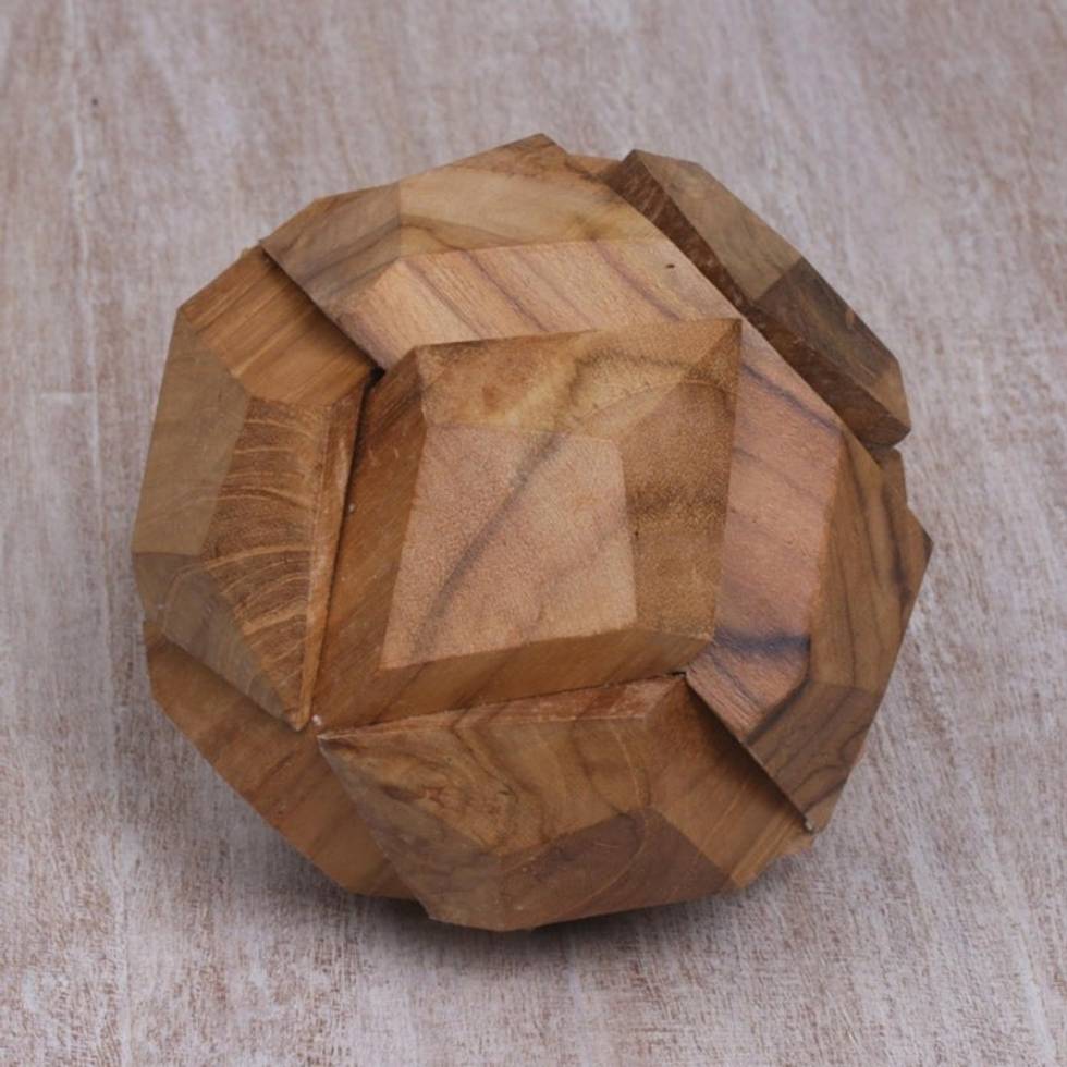 Fair Trade Round Hand Carved Teak Wood Puzzle Ball 'Soccer Ball' Item ID: 2671702635