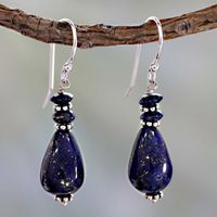 Fair Trade Sterling Silver and Lapis Lazuli Earrings 'Delhi Dusk' Item ID: 2669924612