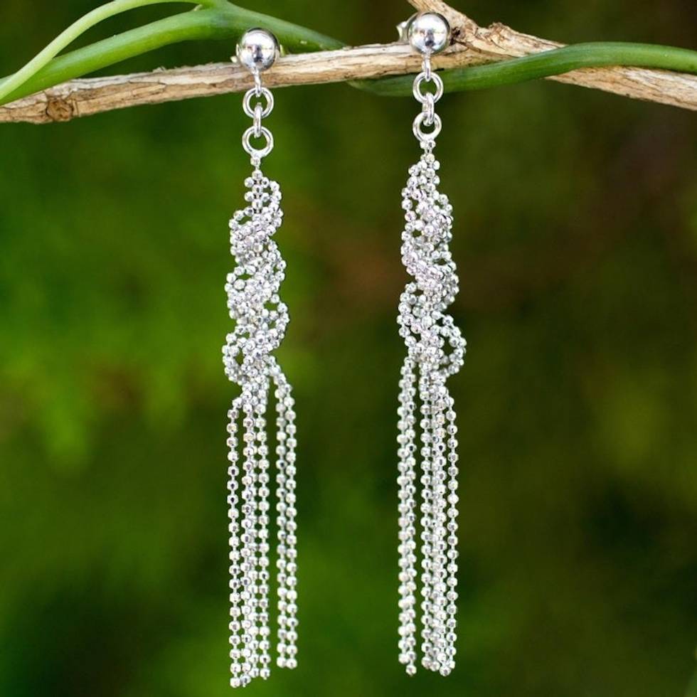 Fair Trade Sterling Silver Ball Chain Waterfall Earrings 'Helix Fringe' Item ID: 2671802156