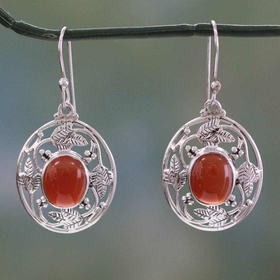 Fair Trade Sterling Silver Carnelian Earrings 'Fiery Avatar' Item ID: 2669943940