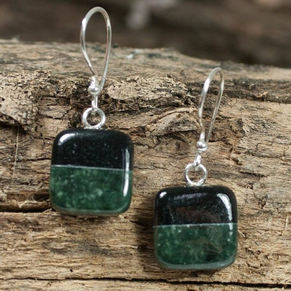 Fair Trade Sterling Silver Jade Dangle Earrings 'Duality' Item ID: 2671779432