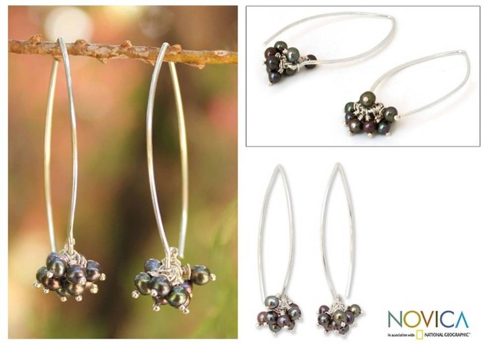 Fair Trade Sterling Silver Pearl Earrings 'Stars of Fascination' Item ID: 2671802956
