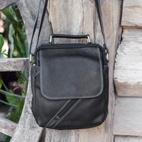 Fair Trade Thai Black Leather Handcrafted Shoulder Bag 'Voyager in Black' Item ID: 2671802164