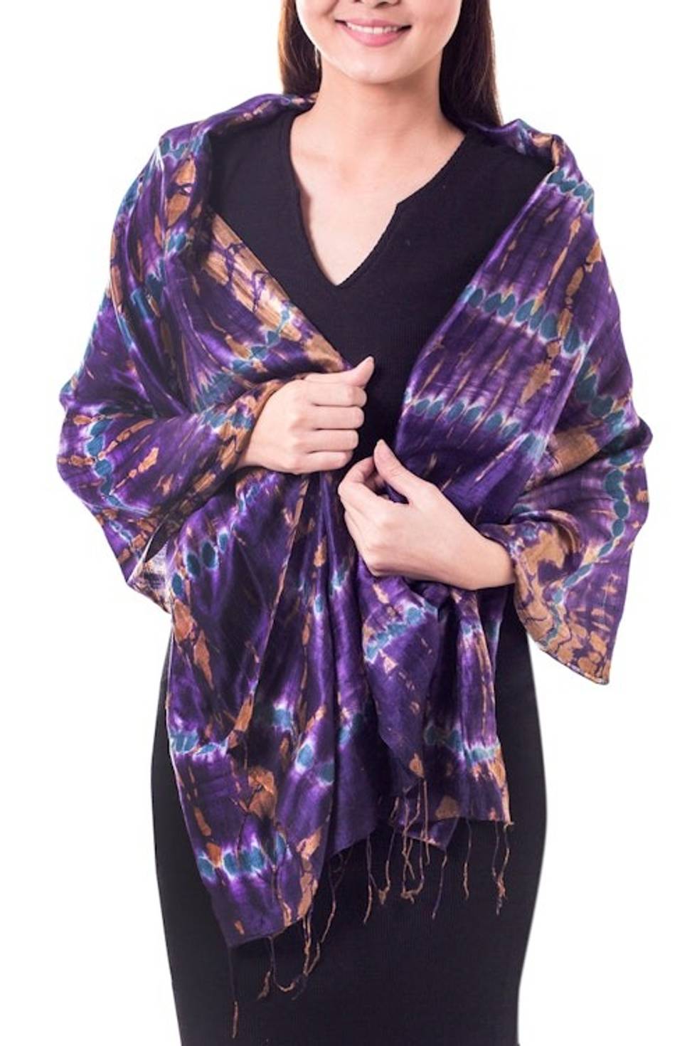 Fair Trade Tie Dye Silk Shawl 'Orchid Mystique' Item ID: 2671803078