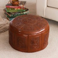 Fair Trade Traditional Leather Pouf Ottoman Cover 'Inca Light' Item ID: 2676641456