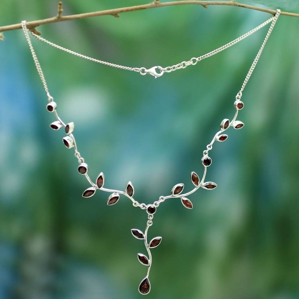 Fair Trade Women's Garnet and Sterling Silver Y Necklace 'Parwati's Passion' Item ID: 2669924796