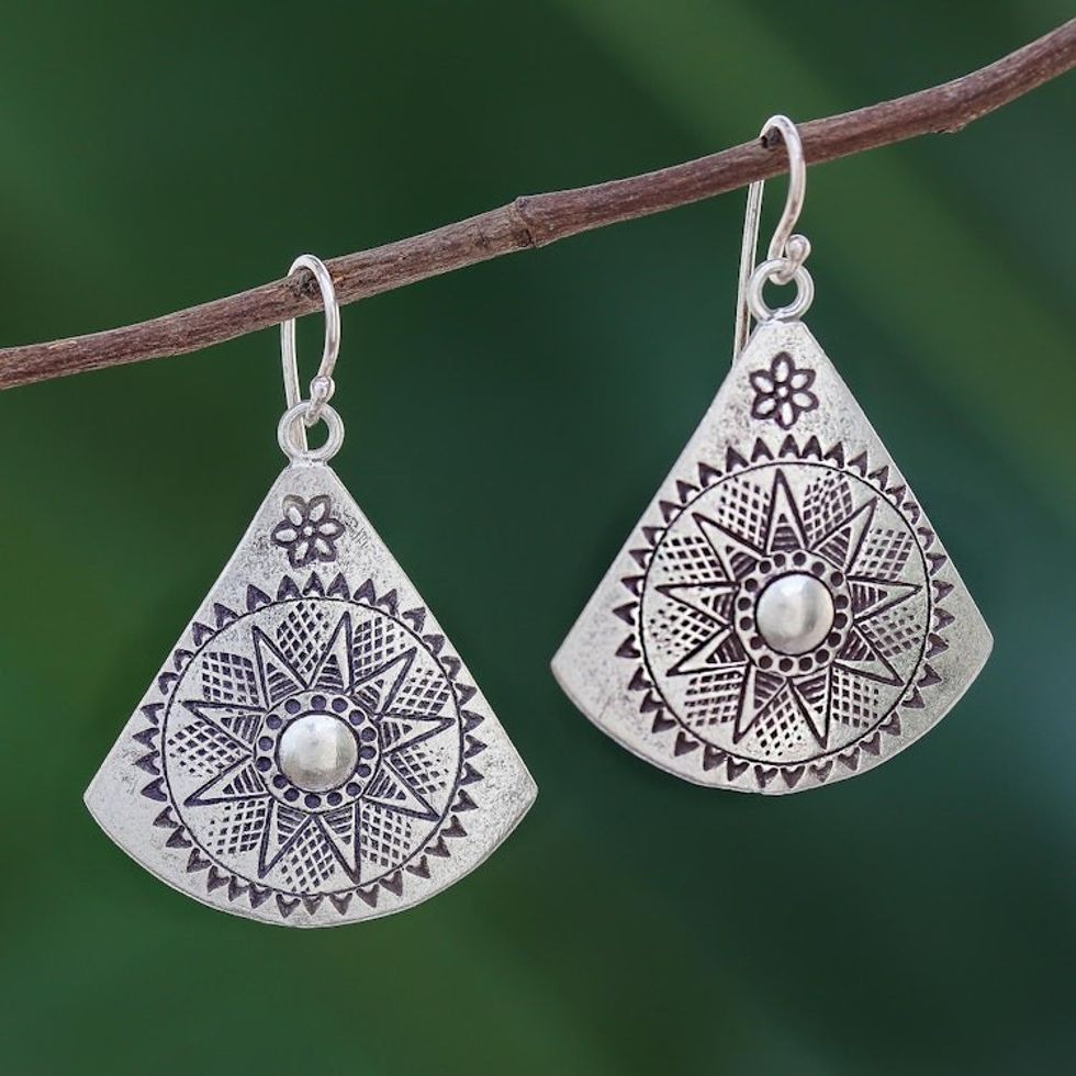 Fan-Shaped Sterling Silver Dangle Earrings from Thailand 'Starry Fans' Item ID: 2671801124