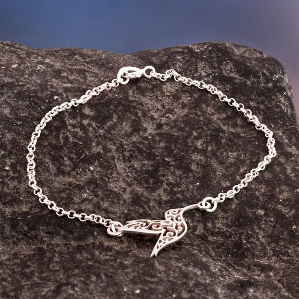 Fantasy-Inspired Hummingbird-Themed Sterling Silver Bracelet 'Hummingbird Vitality' Item ID: 2671698119