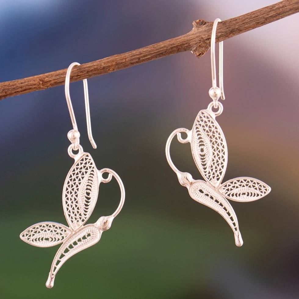 Fantasy-Themed Sterling Silver Filigree Butterfly Earrings 'Fantasy Butterfly' Item ID: 2671697922