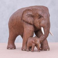 Father and Baby Elephant Teak Wood Statuette 'Father and Baby' Item ID: 2671800372
