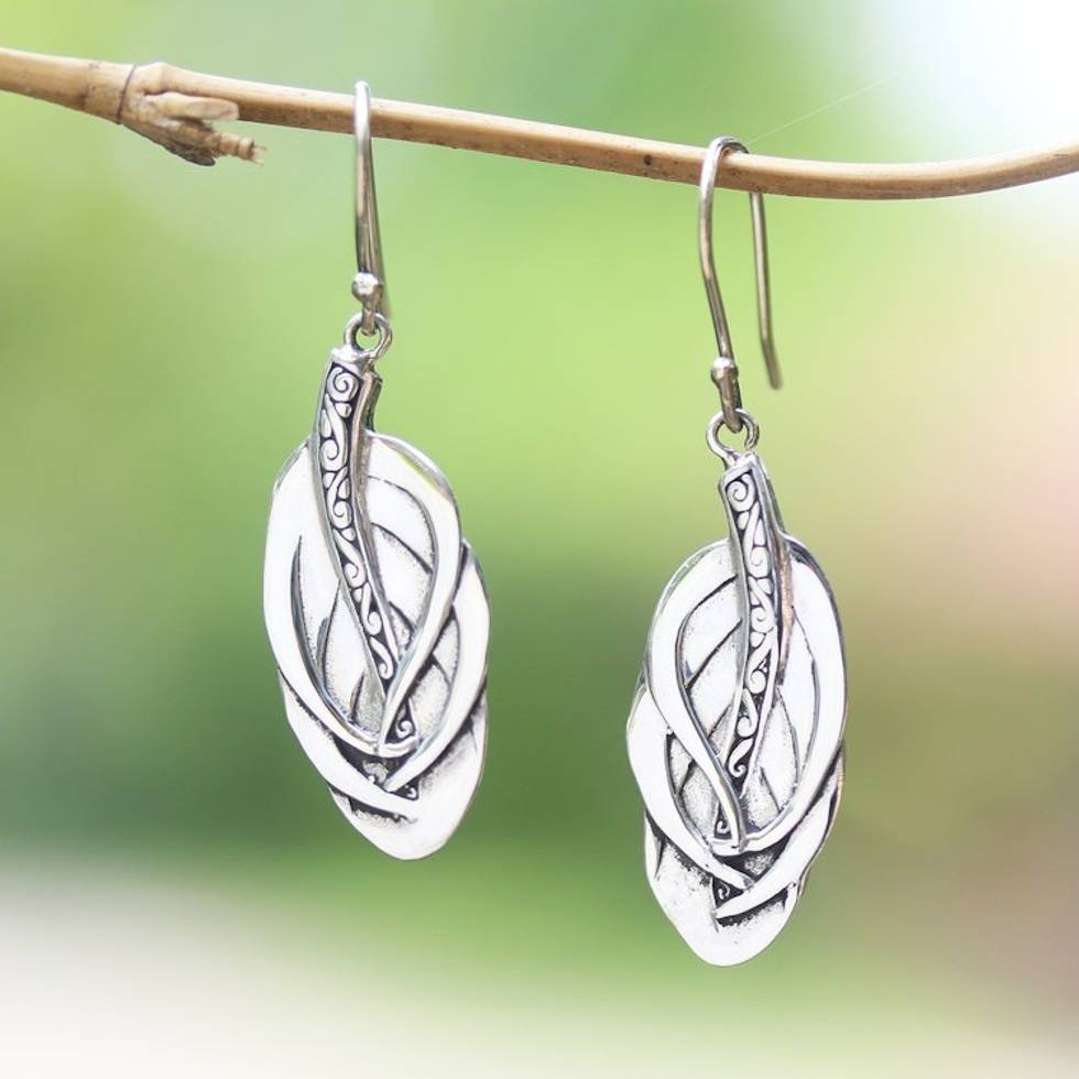 Feather-Shaped Sterling Silver Dangle Earrings from Bali 'Tufted Feathers' Item ID: 2671737032