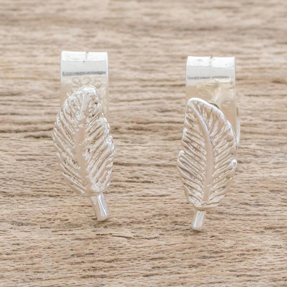 Feather-Shaped Sterling Silver Stud Earrings from Guatemala 'Amazing Leaves' Item ID: 2671777093