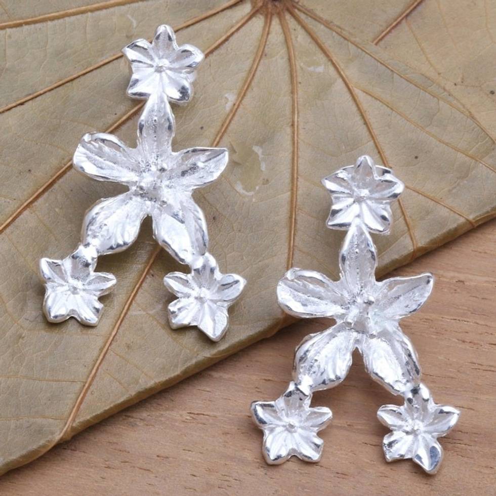 Feminine Sterling Silver Flower Drop Earrings 'Flower Triangle' Item ID: 2671744877