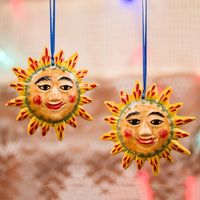Festive Ceramic Sun Ornament Pair from Mexico 'Young Sun' Item ID: 2671808054