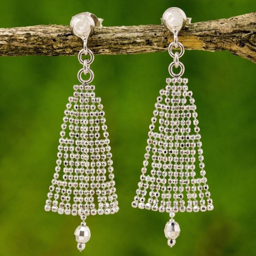 Festive Sterling Silver Chandelier Earrings from Thailand 'Evergreen Trees' Item ID: 2671802024