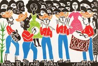 Fife Band Portrait Multicolor Woodcut Print by J. Borges 'Rural Fife Band I' Item ID: 2671815926