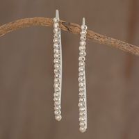 Fine Silver Beaded Drop Earrings from Guatemala 'Rain of Light' Item ID: 2669933182