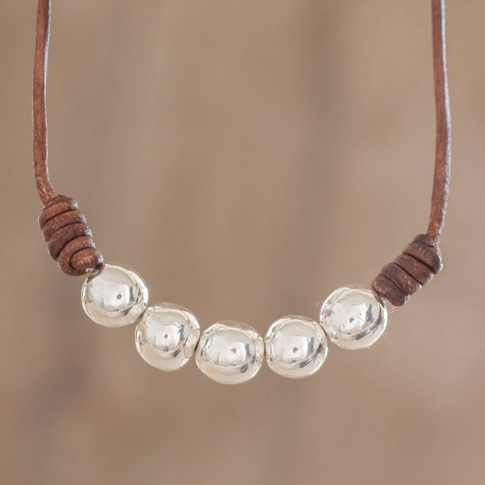 Fine Silver Beaded Pendant Necklace from Guatemala 'Fascinating Planets' Item ID: 2669923618