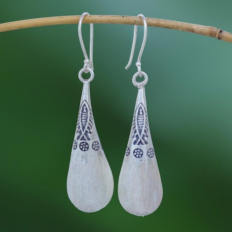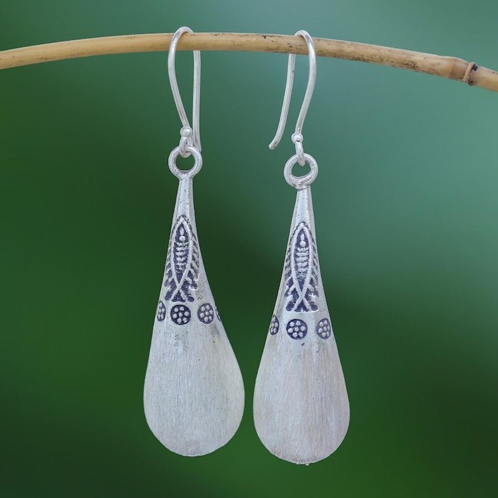Fish Pattern Karen Silver Dangle Earrings from Thailand 'Fish Stamp' Item ID: 2671798765