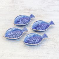 Fish-Shaped Blue Ceramic Appetizer Bowls Set of 4 'Festive Fish' Item ID: 2669894229