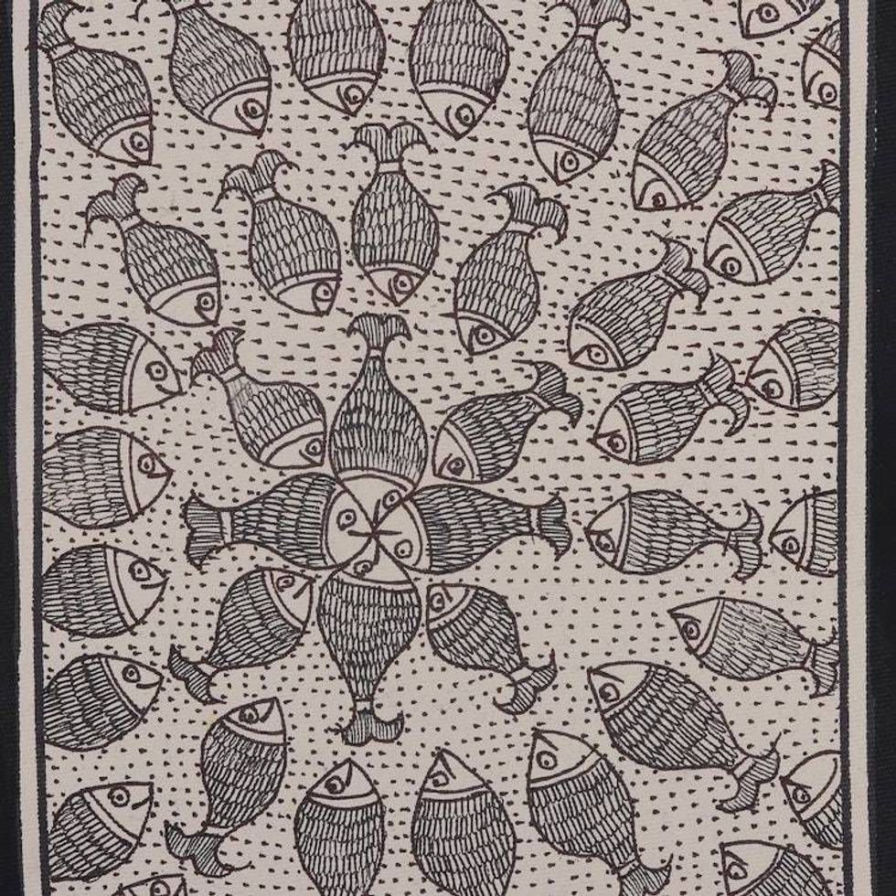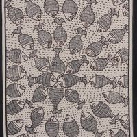 Fish-Themed Black and White Madhubani Folk Art Painting 'Harmony of the Waters' Item ID: 2676665598