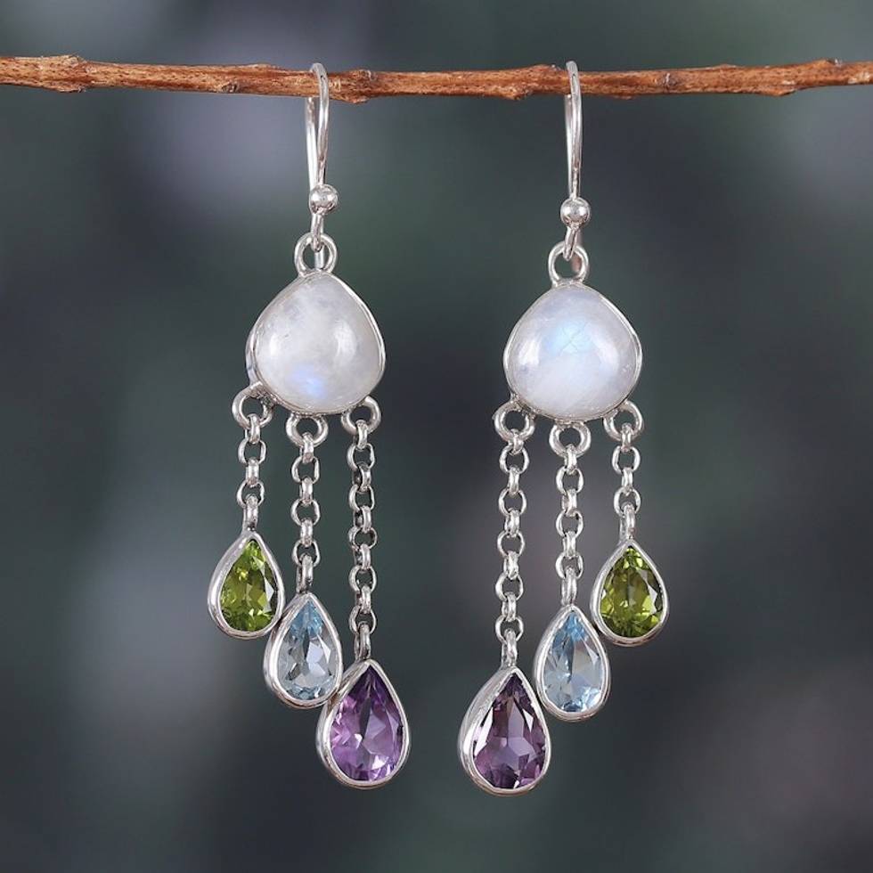 Five-Carat Multi-Gemstone Chandelier Earrings from India 'Jewel Palace' Item ID: 2671781928