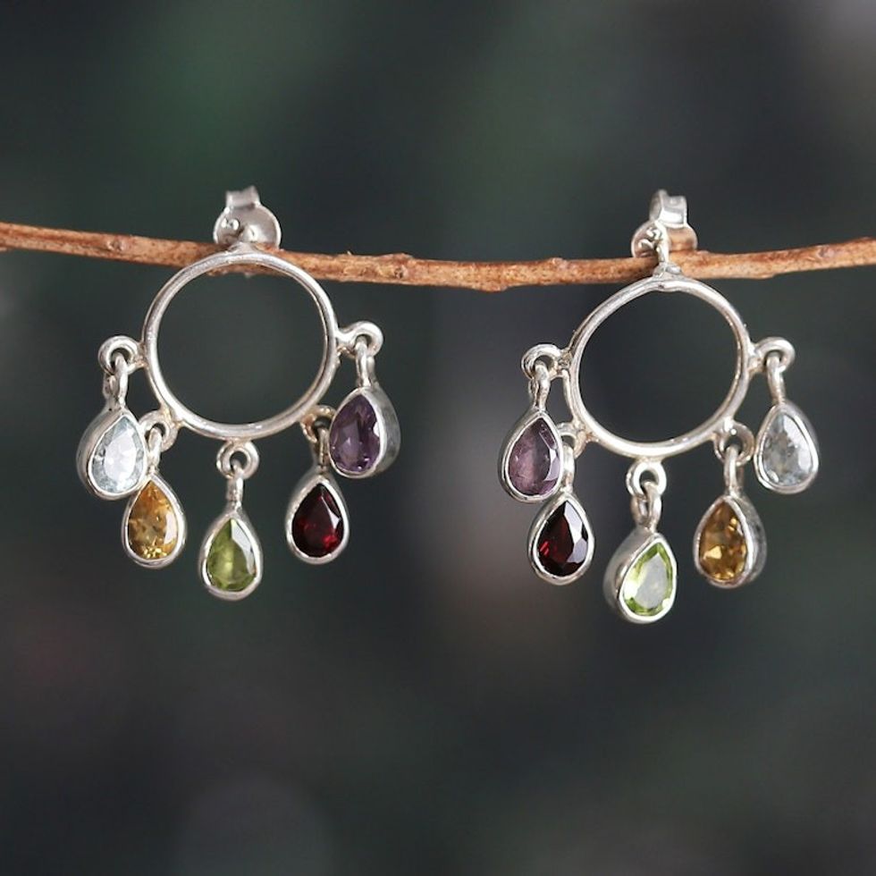 Five-Carat Multi-Gemstone Dangle Earrings with Drop Jewels 'Harmonious Rain' Item ID: 2671624478
