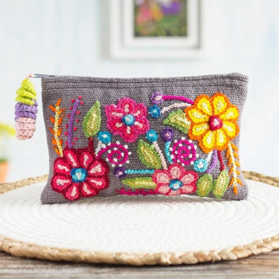 Floral 100 Alpaca Clutch in Smoke from Peru 'Smoke Garden' Item ID: 2671691088