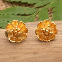 Floral 18k Gold-Plated Button Earrings Crafted in Bali 'Blooming Sunrise' Item ID: 2671763240