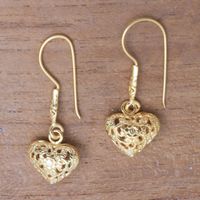 Floral 18k Gold Plated Sterling Silver Heart Dangle Earrings 'Love Flowers' Item ID: 2671735599