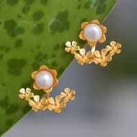 Floral 22k Gold-Plated White Pearl Ear Jacket Earrings 'Pearly Eden' Item ID: 2671669783
