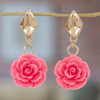 Floral 24k Gold-Plated Resin Dangle Earrings in Carnation 'The Carnation Belle' Item ID: 2669926683