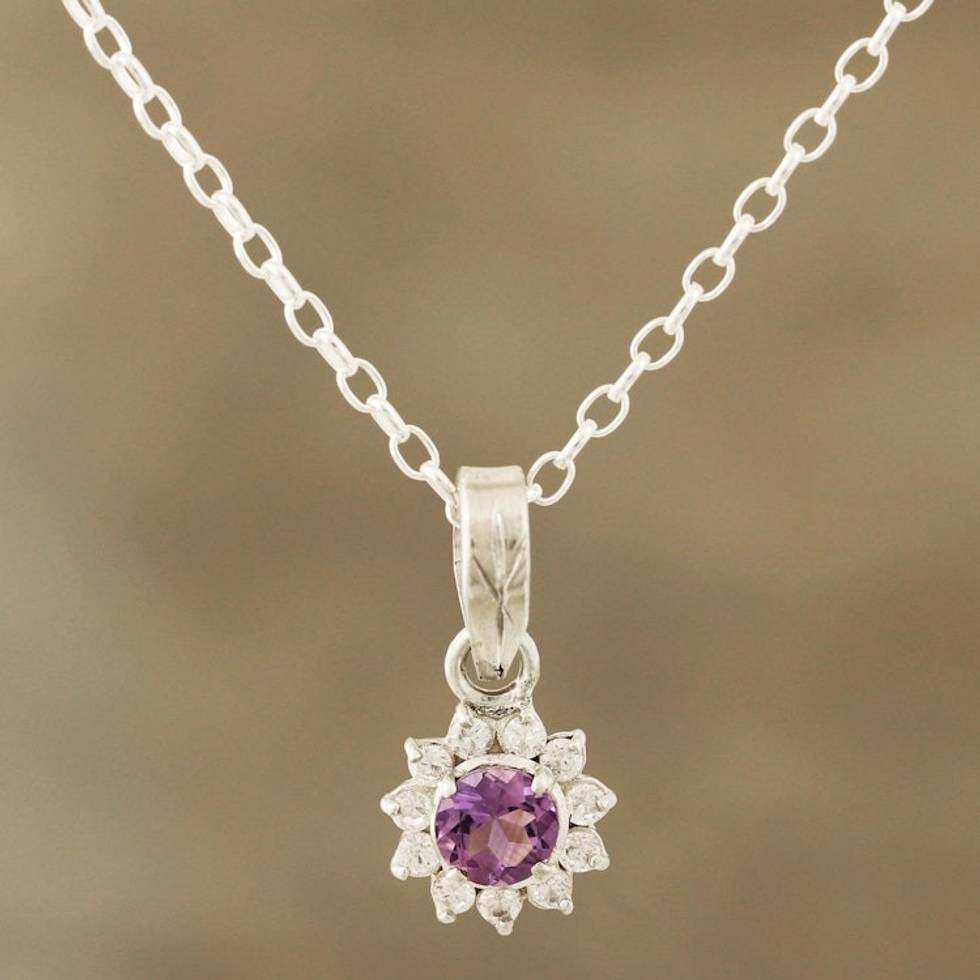 Floral Amethyst Pendant Necklace Crafted in India 'Gleaming Flower' Item ID: 2669925513