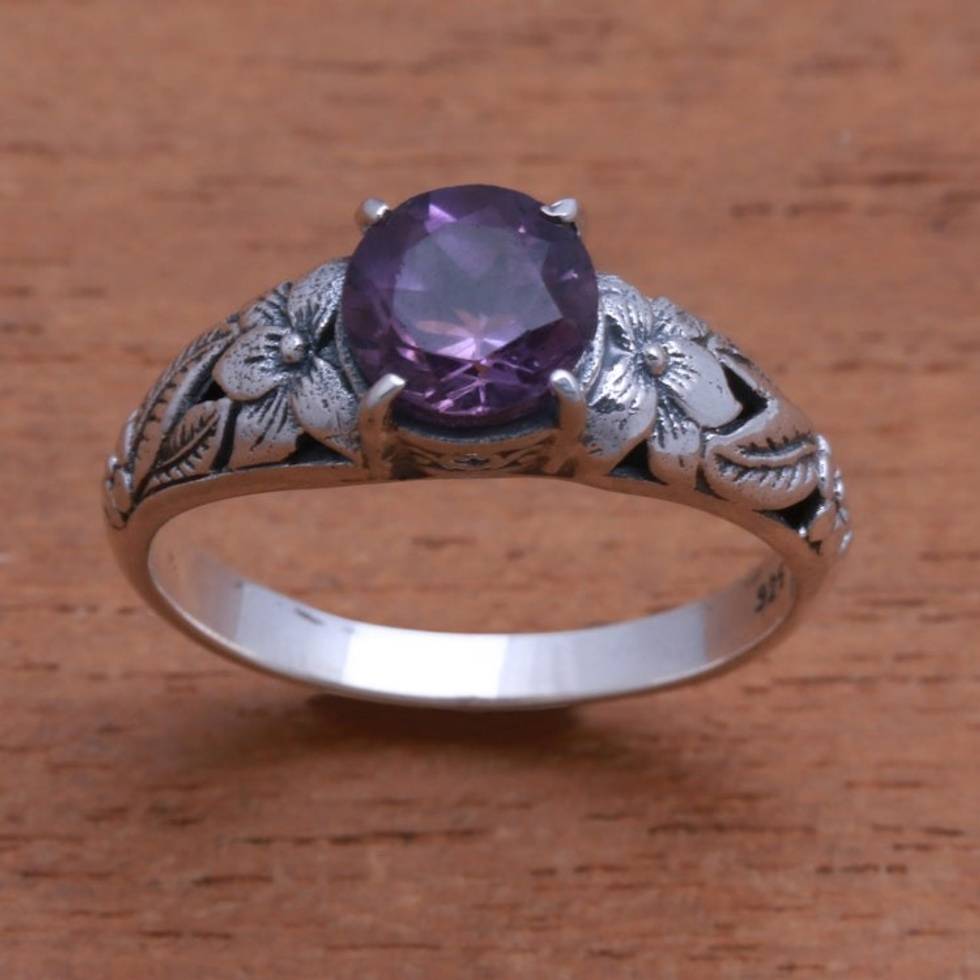 Floral Amethyst Single-Stone Ring from Bali 'Floral Glint' Item ID: 2670122020