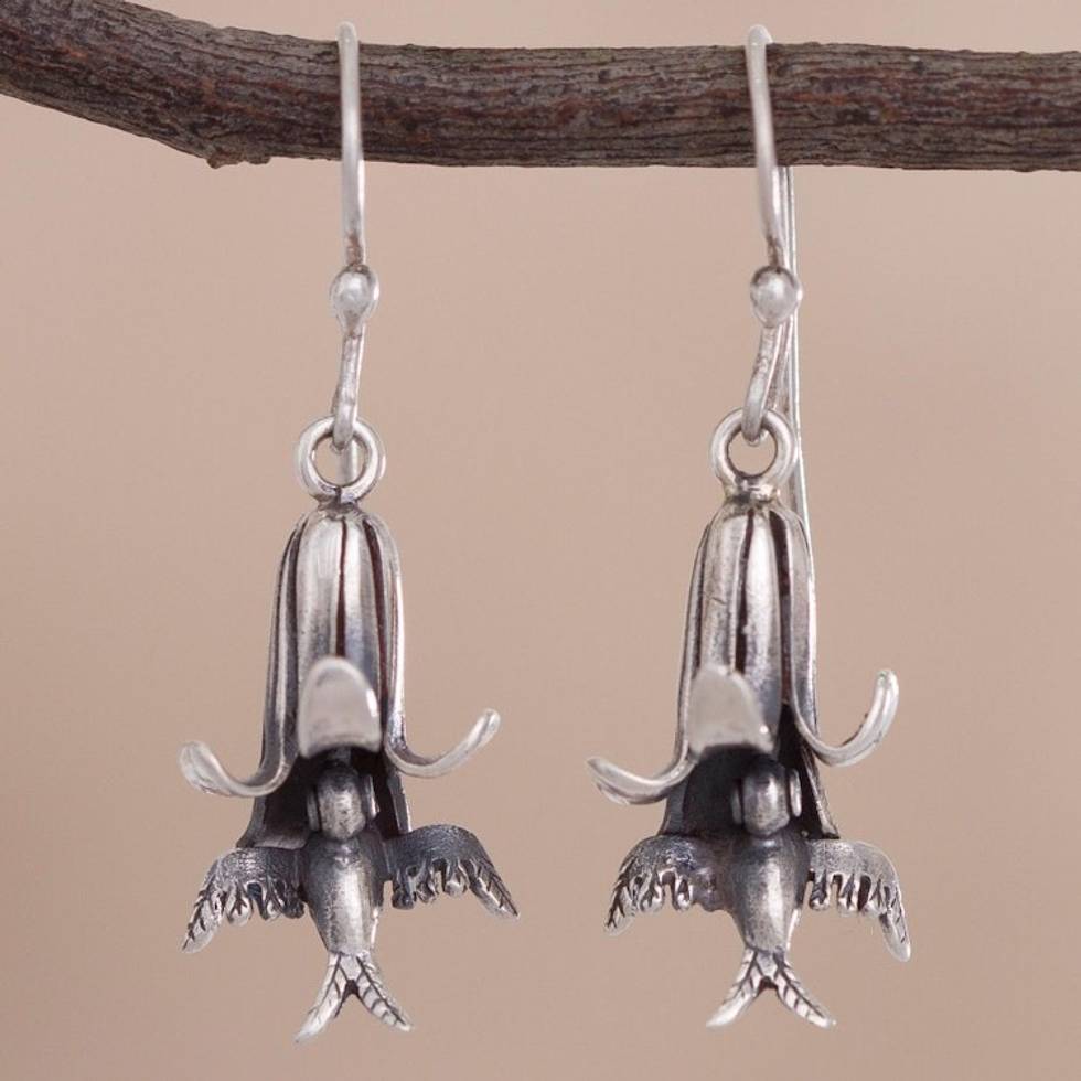 Floral and Bird-Themed Sterling Silver Earrings from Peru 'Hummingbirds of the Andes' Item ID: 2671691541