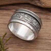 Floral and Dragonfly-Themed Sterling Silver Meditation Ring 'Eternal Time' Item ID: 2671668516