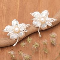 Floral and Dragonfly-Themed Yellow Pearl Button Earrings 'Joyous Dragonfly' Item ID: 2671764860