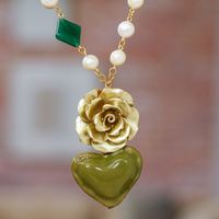 Floral and Heart-Themed Gold-Accented Green Pendant Necklace 'My Forest Heart' Item ID: 2671807788
