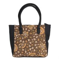 Floral and Leaf-Themed Hand Block-Printed Cotton Tote Bag 'Swirling Blossoms' Item ID: 2676664201