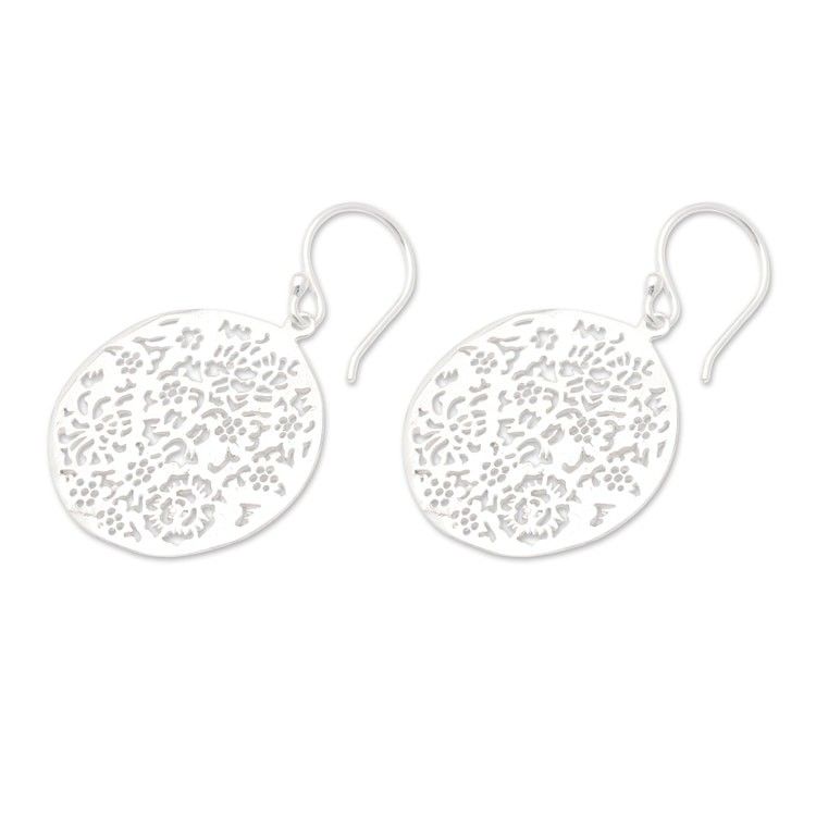Floral and Leafy Round Sterling Silver Dangle Earrings 'Blooming Summer' Item ID: 2671764770