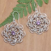 Floral and Sun-Inspired Amethyst Filigree Dangle Earrings 'Noble Sunset' Item ID: 2671763339