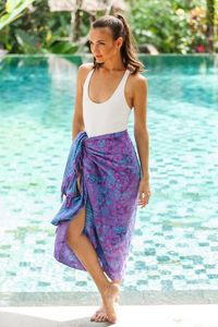 Floral Batik Rayon Sarong in Wisteria from Bali 'Mystifying Forest' Item ID: 2671821013